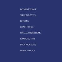 Payment Terms: We accept Visa, MasterCard, American Express and Discover, No C.O.D. accepted.