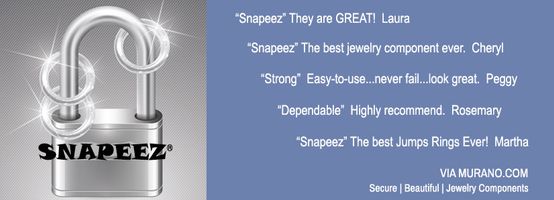 Snapeez Jump Ring SNAPEEZ® The Ultra Secure | No Solder Jump Ring allows you to attach charms, join wire-wrapped pieces, connect earring findings, and link your chain to clasps. You will find a million uses for SNAPEEZ® in your designs. SNAPEEZ® are available in 12 designer finishes and 10 different round sizes and 3 different oval sizes. Our original SNAPEEZ® are available in sterling silver, 14kt gold-filled and 14kt rose gold-filled and they come in 4mm, 6mm, 8mm and 10mm sizes. Twisted Tornado Crimp The Twisted Tornado Crimp® Secure | Easy | Trusted. It is a secure and easy-to-use crimp that is truly beautiful. The Twisted Tornado Crimp® is a small component that makes a huge difference in the overall beauty and security of your work. The Twisted Tornado Crimp® UltraPlate is available in 8 designer finishes and .019 and .024 sizes. Our Twisted Tornado Crimp® Original is available in sterling silver, 14kt gold-filled and 14kt solid gold and .019 and .024 sizes. UltraPlate and DuroPlate Plating